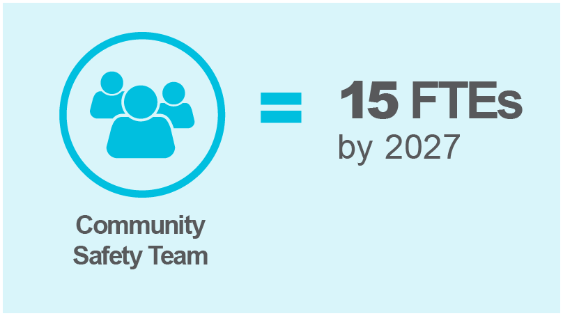 - Expand the Community Safety Team by 63% from 2024 to 2027, adding 15 new staff