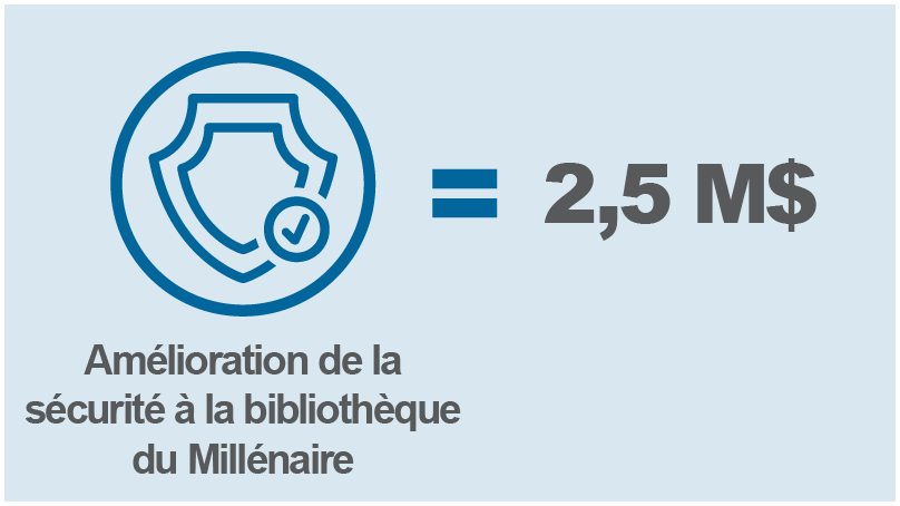- Amélioration de la sécurité à la bibliothèque du Millénaire - 2,5 millions de dollars