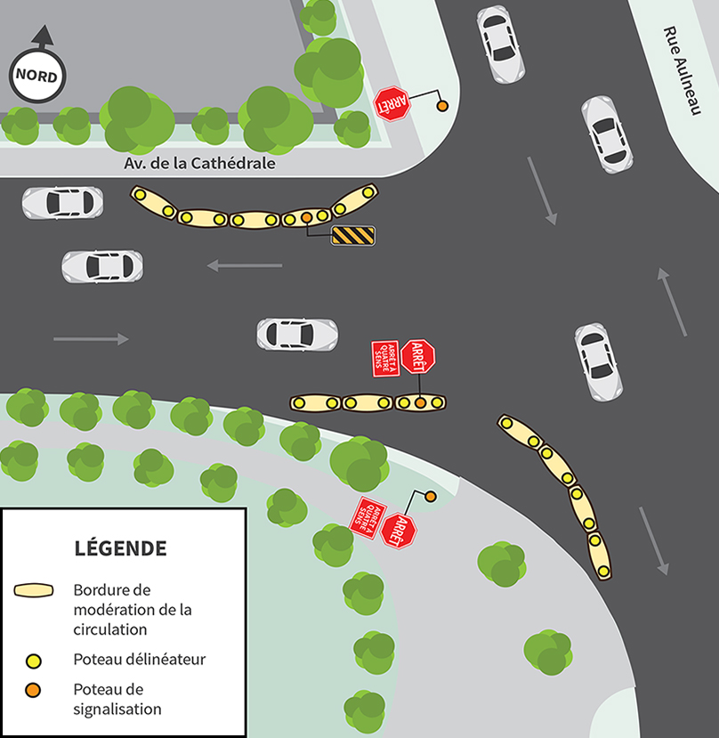- une réduction du rayon de bordure du côté sud de l’avenue de la Cathédrale.