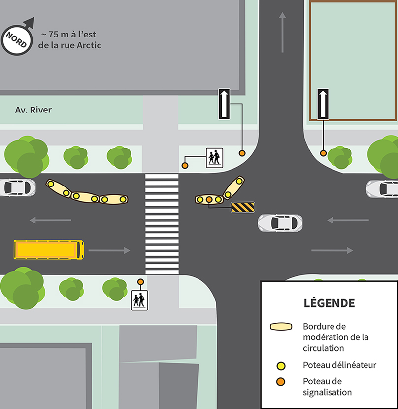 Nous installerons une avancée de trottoir du côté nord de l’avenue River, au passage pour écoliers.