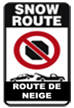 Les artères à déneigement prioritaire (routes de neige) sont clairement indiquées à l’aide de ce genre de panneaux :