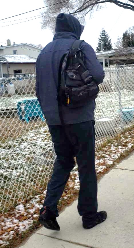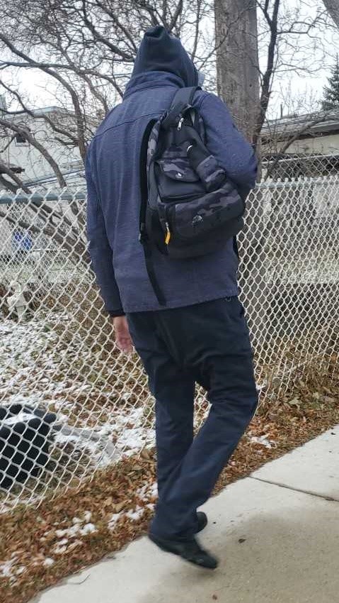 The suspect is described as being Indigenous in appearance, 35-40 years old, 6’2” to 6’4” tall, with a lean build and a rounded nose. He had been wearing gold-coloured glasses (with wired frames), a blue/gray jacket, dark navy blue or black cargo pants, black shoes, and a grey, black and white backpack with a camouflage pattern.