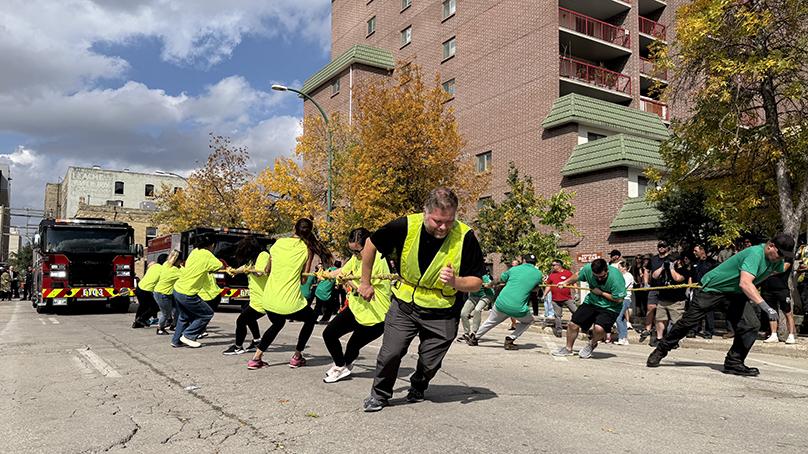 The event was held over employees’ lunch hour. The Winnipeg Fire Paramedic Service's team won the fastest time. Second place went to the Forestry crew. Streets Maintenance took third.
