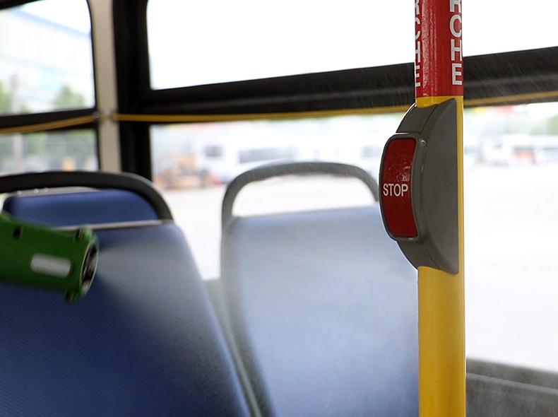 To further enhance cleaning, electrostatic sprayers were also brought in. The technology uses positive and negative charges to clean. Martin said every surface you want to sanitize on a bus – call buttons, bars, doors, and the passenger chime cord – all have a negative charge.