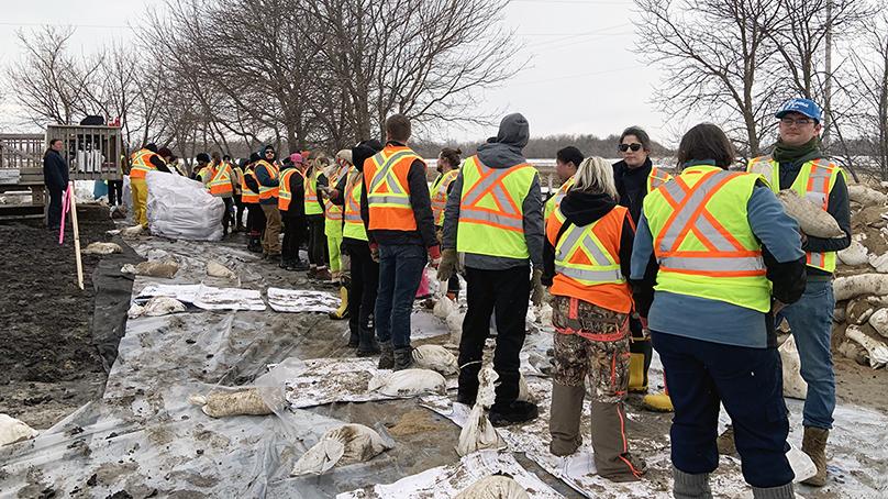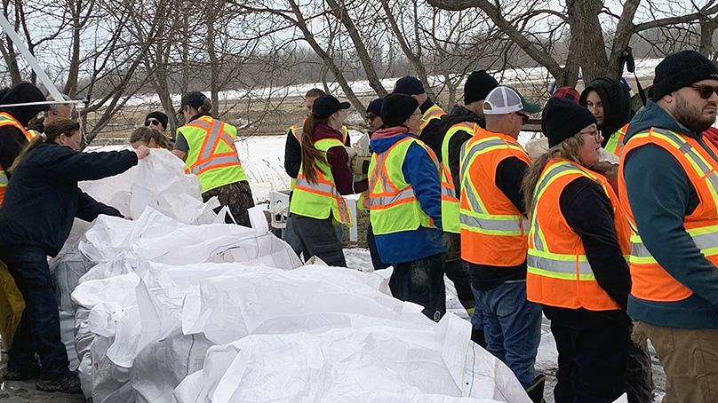 They were filling sandbags and building dikes designed to protect the community. These staff members were able to step away from regular duties for a short period to help the flood fight.