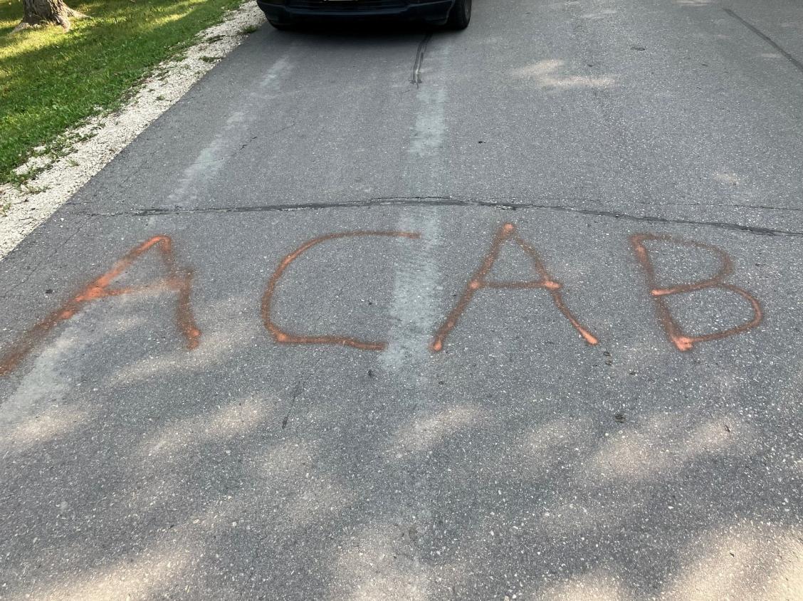 More than 65 phrases including profanity and acronyms used by police abolitionist groups were spray painted on the roadway, walking paths and portable bathroom stalls. It is believed the graffiti occurred overnight and no arrests have been made at this time.