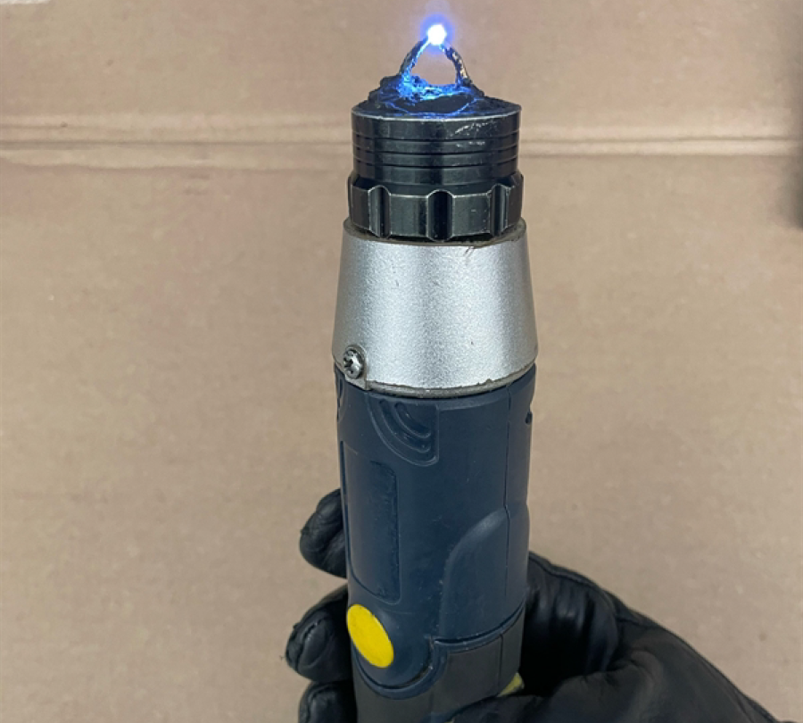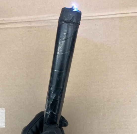 While searching the man’s belongings, officers found and seized a number of weapons and a small amount of illicit drugs totaling $320. This included 0.8 grams of methamphetamine, 2.4 grams of crack cocaine, a can of bear spray, and two fully operational homemade tasers.