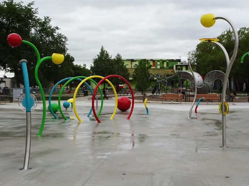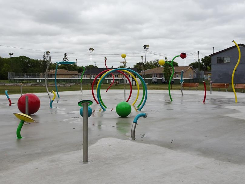 - No bicycles, skateboards, scooters, or in-line skates on the spray pad